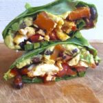 - Smash the avocado on the collard greens, in the middle, but slightly towards one side. Layer the black beans on top.