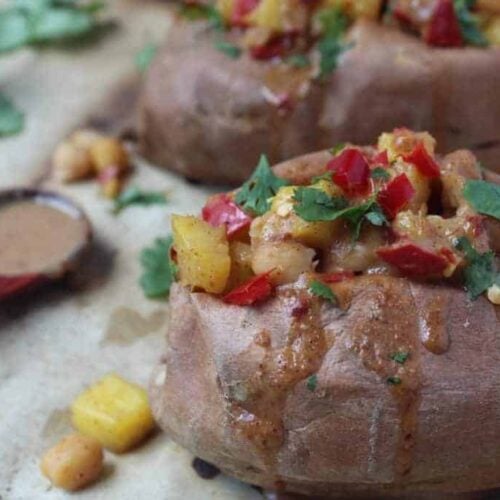 Chickpea & Pineapple Stuffed Sweet Potatoes