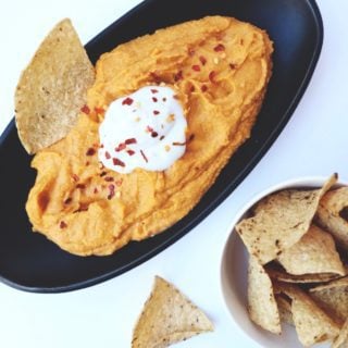 I have been eating it with everything from veggies, chips, on salads, and even just by the spoonful. It would go really well on a sandwich or veggie burger too! Feel free to double the batch to have some all week for easy snacking. I said it serves 8-10, but if you are like me and eat all the hummus, it probably only serves 4-6. This would also be perfect for some football watching! Or pretending to watch football and just eating all the snacks 😉
