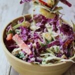 And what better way to kick off the beginning of summer than a coleslaw! When I hear summer I think BBQs, pool parties, grilling, and fresh produce. When there is a BBQ, there is sure to be some kind of coleslaw. While I do love a classic slaw, sometimes they aren’t made with the best ingredients. I’m talking conventional jarred mayo and sour cream. Instead I made a few healthy swaps that pack on the flavor and health benefits, and is easy on your waistline. I mean it is bikini season right?!