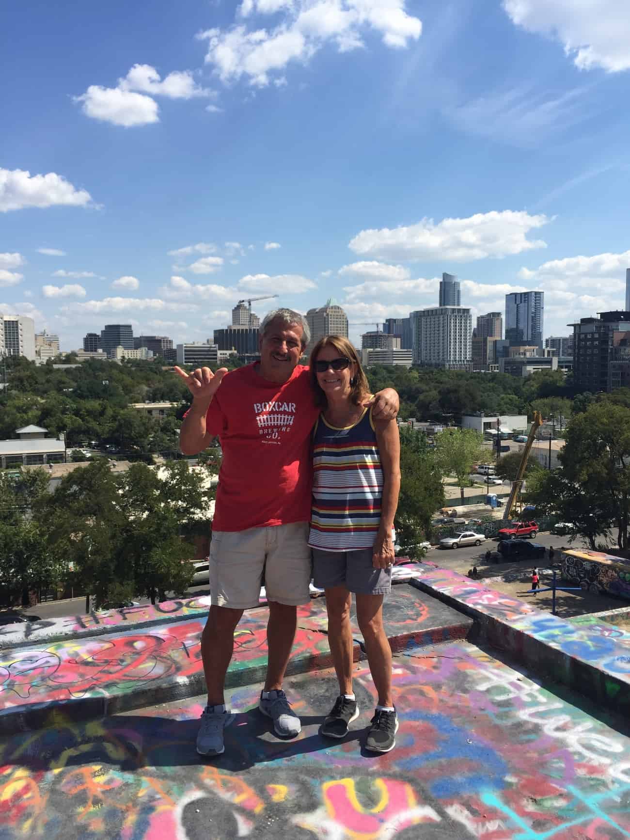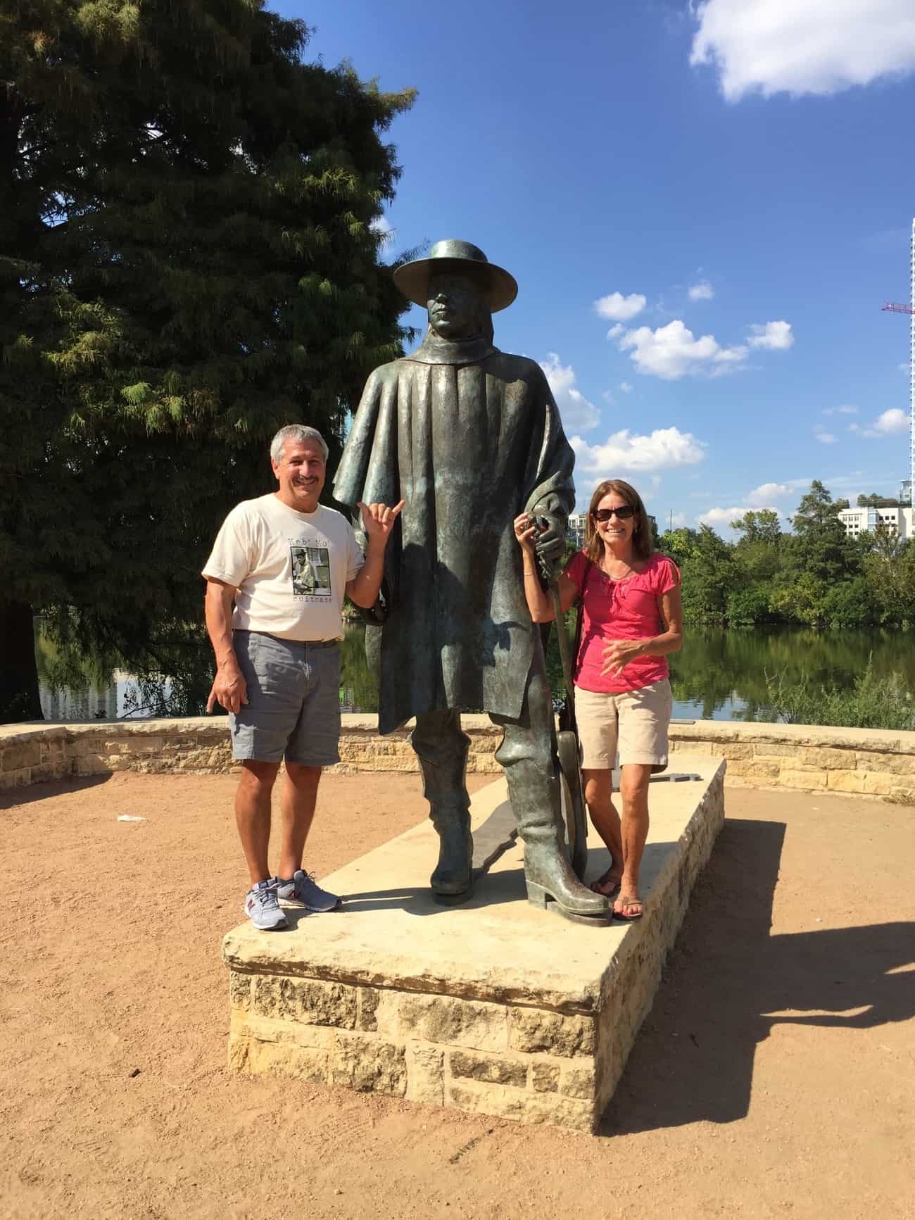 Sight seeing downtown and my parents with the Stevie Ray Vaughan statue. My dad was so excited to see this haha.