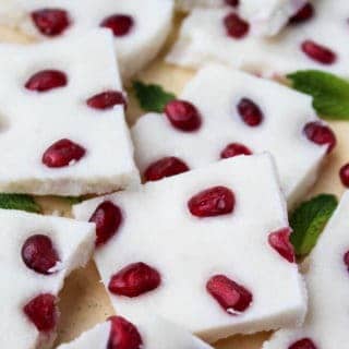 Four ingredients make this paleo & vegan Pomegranate Peppermint Coconut Bark, a perfect healthy treat for the holidays or a great homemade gift to give.