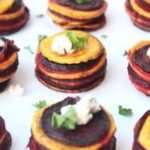 These Roasted Sweet Potato & Beet Stacks make a fun, easy, and healthy side dish for your holiday get-togethers.