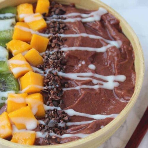 - optional toppings: kiwi, mango, granola, cacao nib, coconut butter...