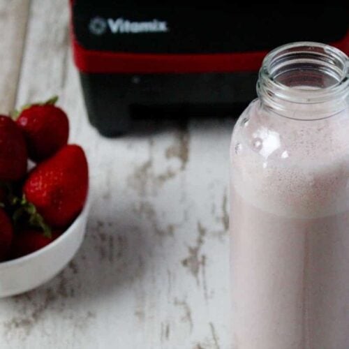 This Strawberry Cashew Milk turns one of your childhood favorites in a creamy and nutritious drink that is dairy-free!