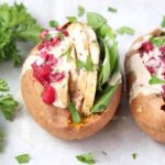 Grab your Thanksgiving leftovers staples & stuff them into a baked sweet potato! Customizable to make it your own, from paleo, Whole30, and gluten free!