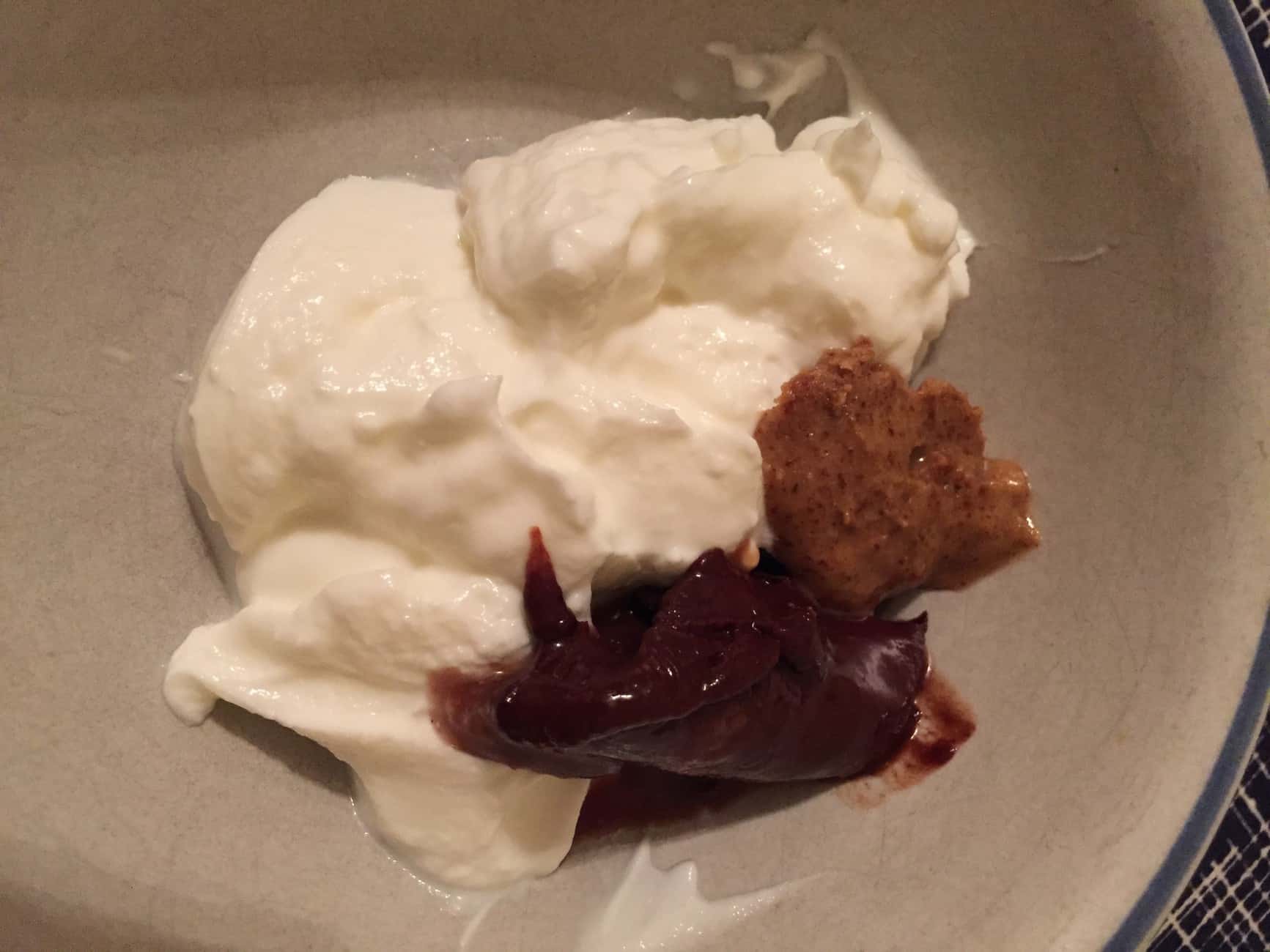 When we got home I had some Greek yogurt topped with almond butter and some love bean fudge. Not the most photogenic yogurt bowl. Then passed out like a baby.