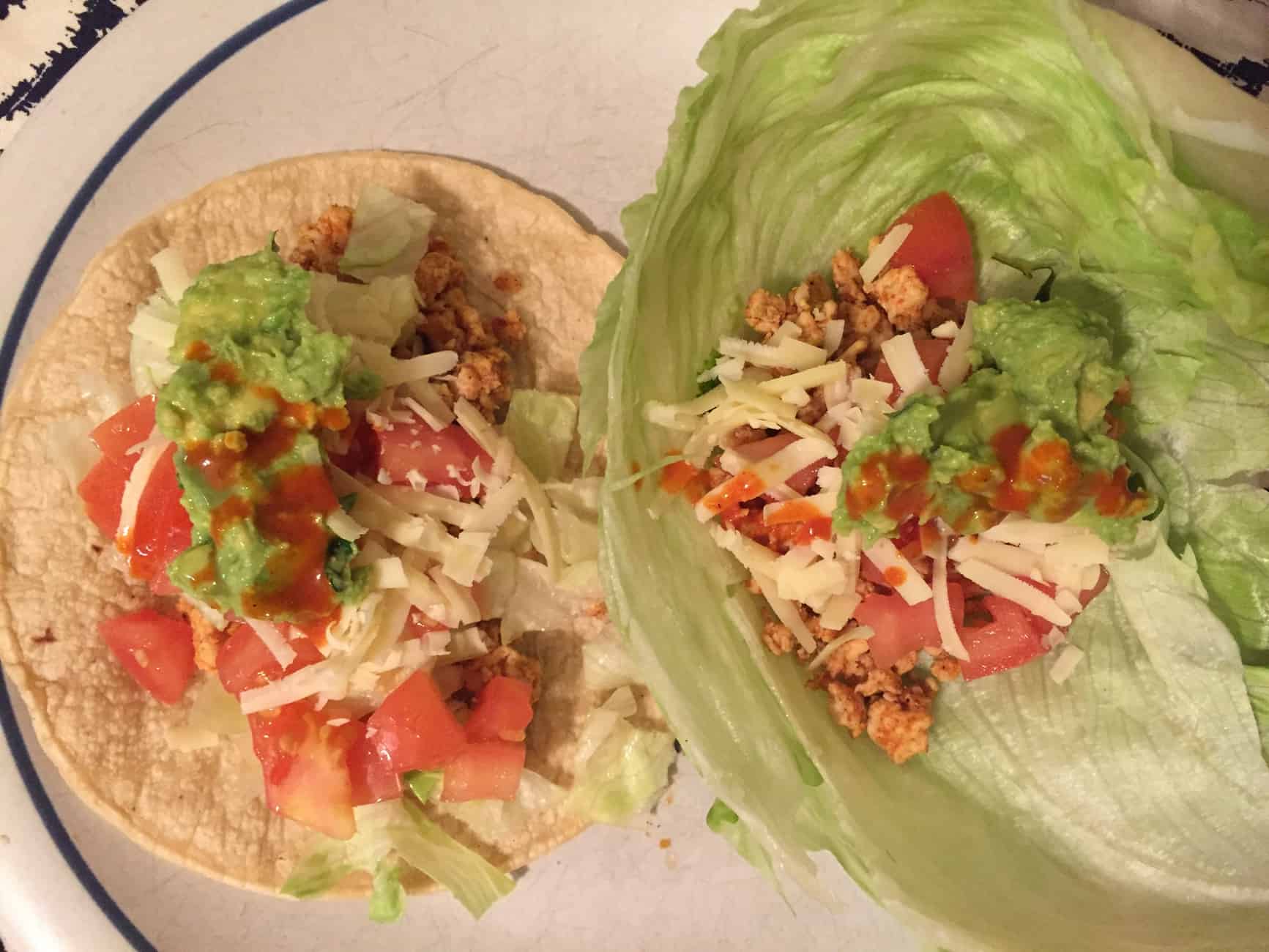 For dinner we celebrated Taco Tuesday! Ground chicken, corn tortillas, lettuce wraps, tomatoes, guacamole, and shredded cheese. Can’t go wrong with that.