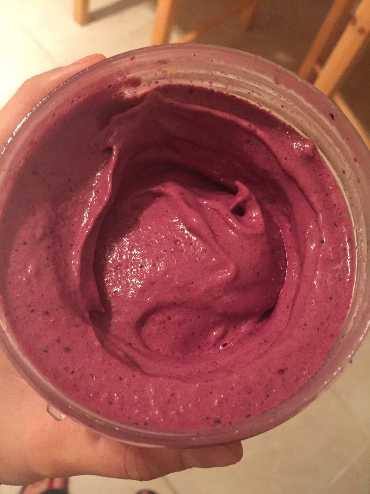 After dinner I wanted a treat like protein shake, so I had chocolate whey, frozen berries, sunbutter, and some ice. It turned out really thick, which was exactly what I was going for.